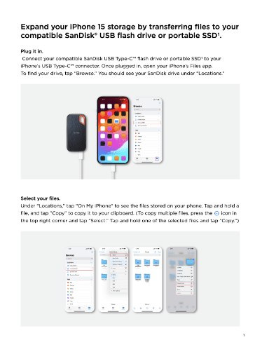 Make any device from the iPhone 15 lineup a content powerhouse with compatible expanded storage and backup — plus direct HD video recording1 — using our compatible USB-C™ drives.