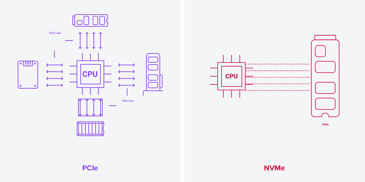 - PCIe® es la interfaz física de alta velocidad que conecta dispositivos como SSD a un ordenador.