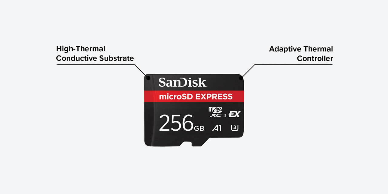 En su lugar, el equipo de SanDisk desarrolló ThermAdapt, una nueva tecnología patentada que envuelve las tarjetas en un sustrato altamente conductor térmico que disipa el calor de manera más eficiente. También integran un controlador térmico dinámico adaptativo y un algoritmo para responder a las especificaciones del dispositivo host y mitigar el calor en consecuencia según sus requisitos únicos.